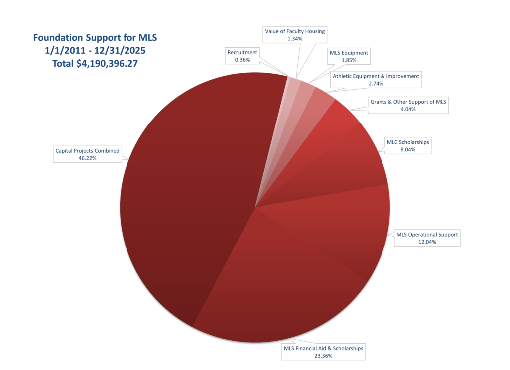When you support the MLS Foundation, you have the opportunity to designate your gift for a specific fund or purpose. You can also give to support the greatest need, where the foundation’s Board of Directors has flexibility to apply where it is needed most. The information below shows how gifts have been applied to support the MLS Foundation and Michigan Lutheran Seminary. Visit our Projects page for further information.