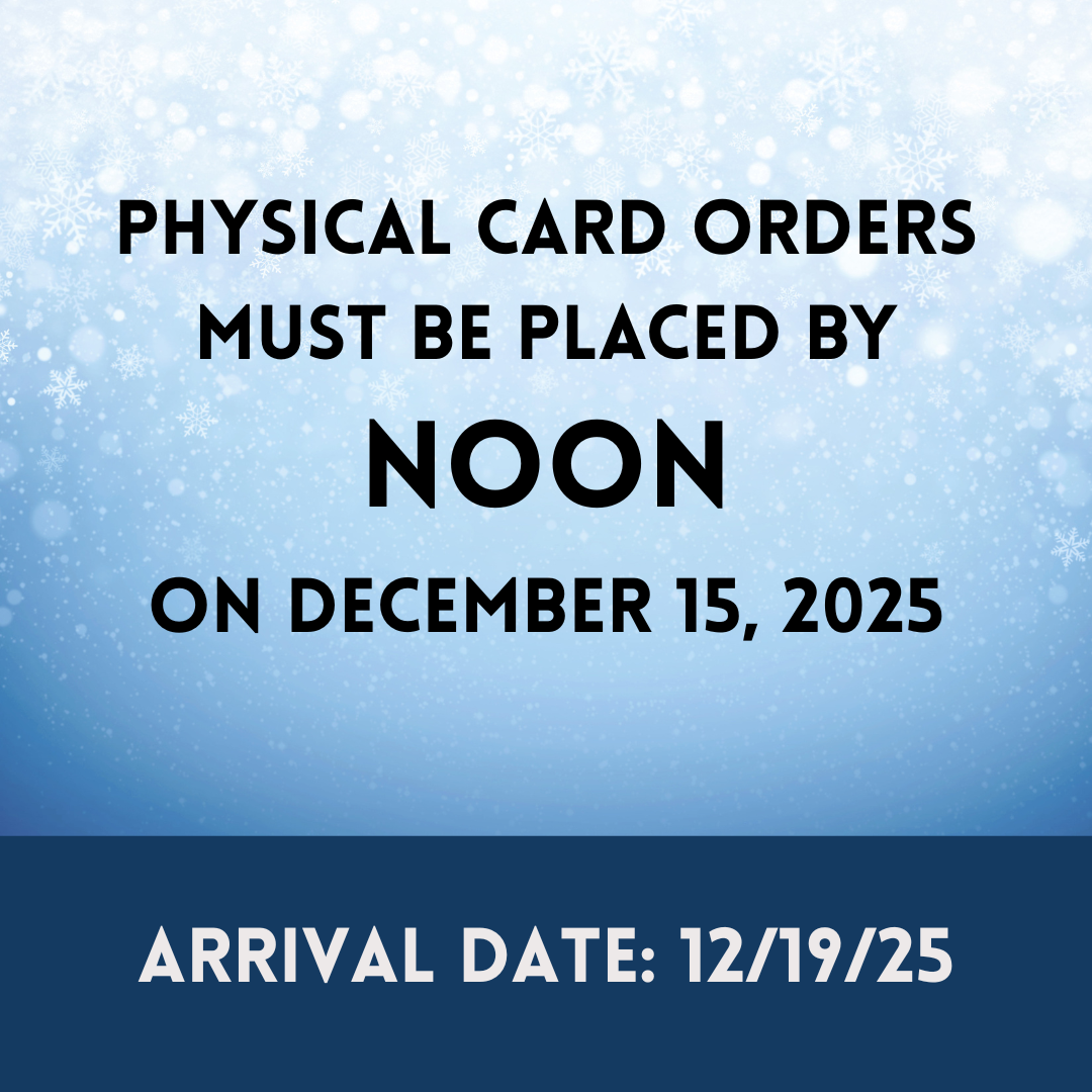 Orders for physical cards will be shipped to the foundation office by December 19, 2025.